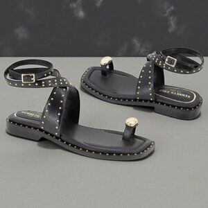 Kenneth Cole Ravenn Black Faux Leather Studded Sandal - Size 9 Med