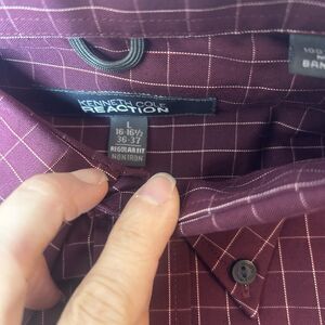 Kenneth Cole Reaction 16-16.5 36/37 Texas A&M Burgundy Red Grid Longsleeve Butto