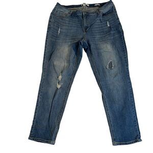 Kenneth Cole Reaction 16W Boyfriend distressed stretch denim blue jeans