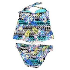 Kenneth Cole Reaction 2 Piece Tankini Swimsuit Floral Aztec Print Size Small S