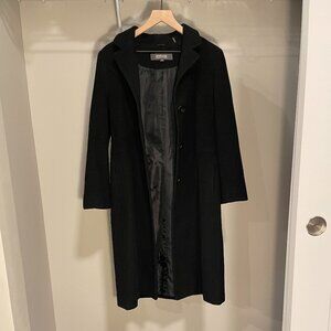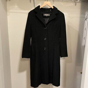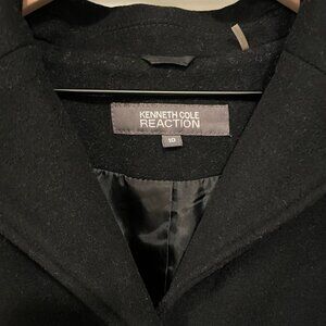 Elegant Kenneth Cole Reaction black wool coat, perfect for a Fall/Winter look