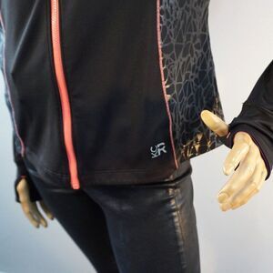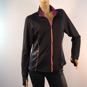 Kenneth Cole Reaction Activewear Sz L Long Sleeve Zip Mesh Inlays Womens Top