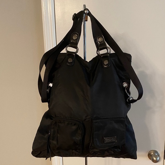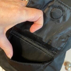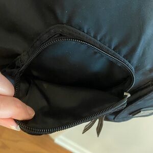 In fantastic condition! Black backpack with magnetic zip pockets, with a large empty interior with a zip pocket. 13”Wx16”Hx3”D. Super sharp convenient backpack!