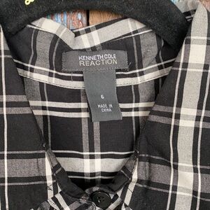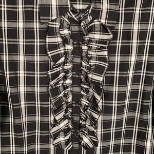 Here is a fun Kenneth Cole Reaction Black Cream Ruffle Shirt size 6 in good used condition with minimal signs of wear.