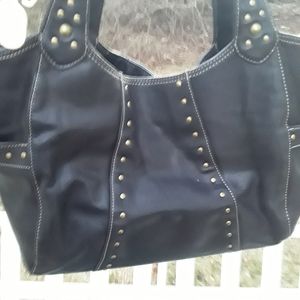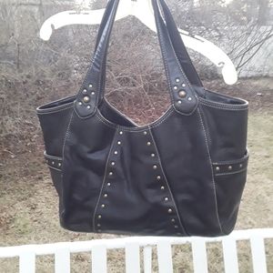 Kenneth Cole Reaction Black Leather Large Hobo Bag studded