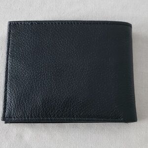 Sleek and stylish, this Kenneth Cole Reaction wallet is crafted from high-quality black leather. Perfect for organizing your essentials with elegance. The 4th picture shows only flaw, where the picture holder is worn.