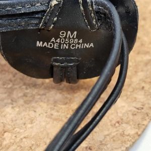 Kenneth Cole Reaction Black Leather Wedge Thong Sandals 9M Shell Beaded Cork Bed