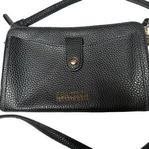 Kenneth Cole Reaction Black Pebbled Faux Leather Crossbody Bag Wristlet Wallet