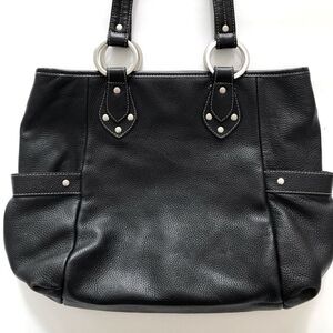 Kenneth Cole Reaction Black Pebbled Leather XL Double Handle Shoulder Tote Bag