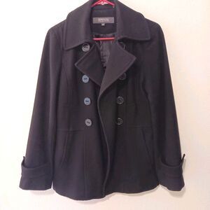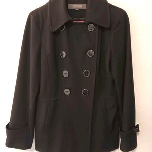 Kenneth Cole Reaction Black Wool Blend Double Breasted Peacoat Women's Sz 10