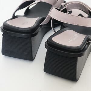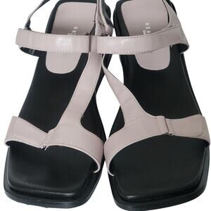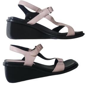 Stylish sandals with a black wedge sole. Cream straps with adjustable buckle. Perfect for casual outings.