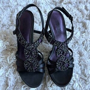 Kenneth Cole Reaction Black-Purple Satin Beaded 4" Heels (Size 6)