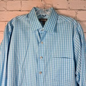 Kenneth Cole Reaction Blue Gingham Men's Long Sleeve Button Down Large M178