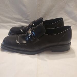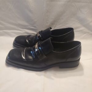Kenneth Cole Reaction Bottoms Away Loafers Black Leather Chrome Accent Size 12
