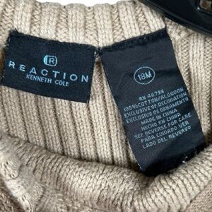 • Beige sweater shows signs of wear but remains functional and stylish, not rip or stain.