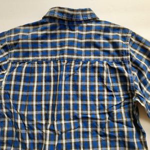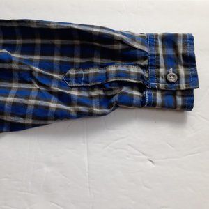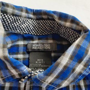 Kenneth Cole Reaction Boys Shirt Button Down Blue Black Plaid Long Sleeve 6-7