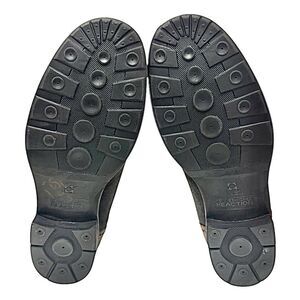 The product is a pre-owned pair of Kenneth Cole Reaction brown leather Derby dress shoes in size 9 for men. These stylish shoes are designed with a classic Derby style and feature a durable leather upper material in a rich brown color. Perfect for formal occasions, they offer both comfort and a polished look that is sure to elevate any outfit.