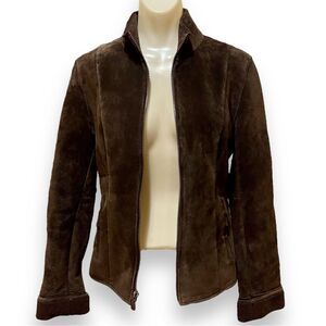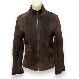 Kenneth Cole Reaction Brown Suede Sherpa Lined Zip Front Jacket