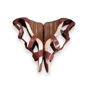 Kenneth Cole Reaction Cedar Brown Leather Strappy High Heel Wedges Sz 8.5