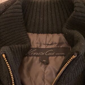Sophisticated charcoal trench coat. Features button closure inner bib and classic design. Ideal for versatile wear.