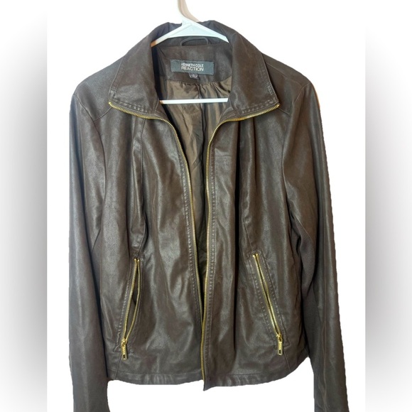 Kenneth Cole Reaction Chocolate Brown Faux Leather Jacket – Brown – Size L