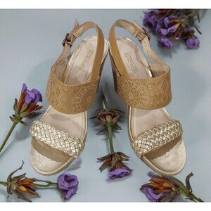 Kenneth Cole Reaction Cork Wedge Sandals Size 7.5 Sling Back Beach