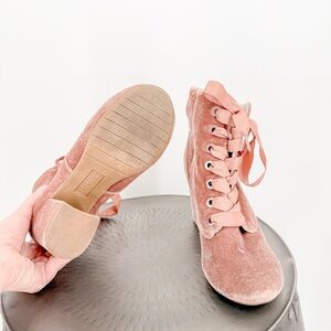 Kenneth Cole Reaction Corrine Velvet Ankle Boots Blush Pink Lace Up Heel…