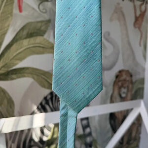 Kenneth Cole Reaction Dot Tie bluesh/Green olive Polka Dots 100%Silk