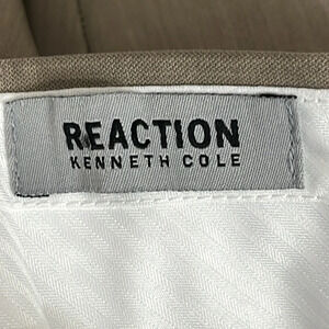 Kenneth Cole Reaction Flat Front Dress Pants in Tan - NWOT - Size 30. New without tags. They came to me in a pallet so they may have pallet dust/dirt. Sold at Nordstrom. Approximate measurements: 16" waist, 10" rise, 30" length.