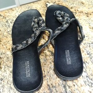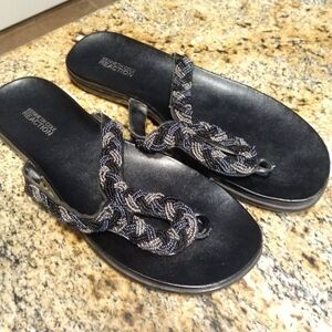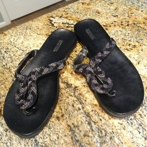 Kenneth Cole Reaction Flip Flop Beaded Black Sandals Women's Size 11 Med