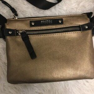Kenneth Cole Reaction Gold Shoulder Bag Purse Crossbody Messenger Faux leather