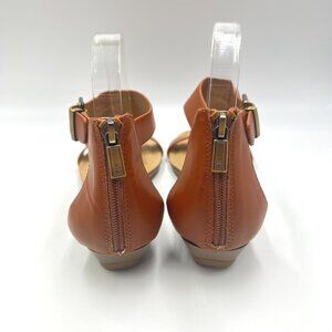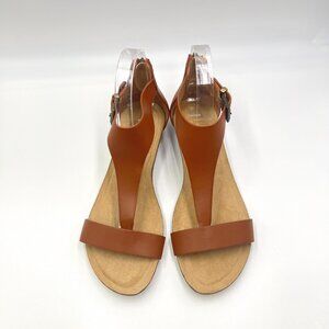 Kenneth Cole Reaction Great Gal Cognac Brown T-Strap Low Wedges Sandals Shoes