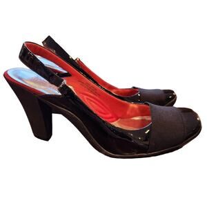 Kenneth Cole Reaction Heels Size 8.5 Hype Dream Black Slingback Pumps Square Toe
