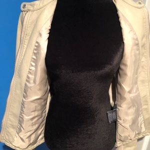 Jacket with fabric side panels a bit stretchy, 2 hand pockets with zipper closure.