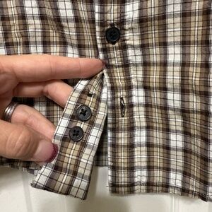 Chic checkered shirt for kids. Features a classic button-down style. Soft and comfortable fabric. 12months. Extra buttons if needed. Smoke and pet free home!