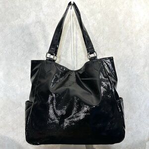 Kenneth Cole Reaction Large Quilted Tote Black Patent Leather Boho Shoulder Bag