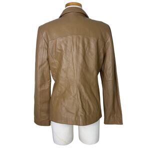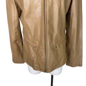 Kenneth Cole Reaction Leather Jacket Tan Camel Zip Front Collared Womens Medium