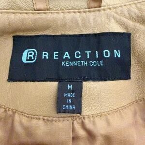 Kenneth Cole Reaction Leather Jacket Tan Camel Zip Front Collared
