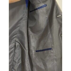 The Kenneth Cole Reaction Men's Blazer Sport Coat in size 40R is a classic and versatile piece that can be worn for both professional and casual occasions. The dark gray color and solid pattern make it a stylish choice for any wardrobe. This single-breasted blazer features a four-button sleeve button style, double-vented back, and a two-button front closure. The notch lapel adds a touch of sophistication, while the regular fit and quality construction ensure both comfort and a polished look. Perfect for the modern man looking to upgrade his outerwear game.
