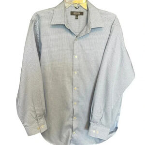 Kenneth Cole Reaction Men's Blue Plaid Long-Sleeve Shirt Size 16, 32-33 sleeves