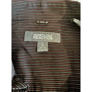 Kenneth Cole Reaction Men's Burgundy & Black Stripped Slim Fit Long Sleeve Shirt
