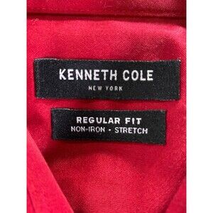 The Kenneth Cole Reaction Men's Dress Shirt in size 16x34/35 features a solid red color made from 100% cotton. This regular fit shirt has a collared neckline with a button closure, making it suitable for casual occasions. The spread collar and barrel cuff add a classic touch to this dress shirt, perfect for any man's wardrobe. Easy to care for, this shirt is non iron, stretch, and machine washable for convenience.