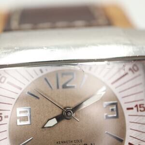 Kenneth Cole Reaction Mens Dual Time Multi Dial Tank Watch 38mm Leather Strap