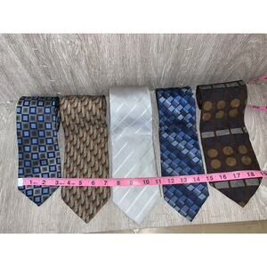 Keywords: Kenneth Cole Reaction, men's set, multicolor tie, silk blend, geometric pattern, business attire, wedding accessory, formal wear, designer style, classic length, durable material, men's fashion, pre-owned ties, 5-piece set, men's accessories.