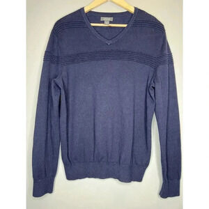Kenneth Cole Reaction Mens Ribbed Striped V Neck Sweater Pullover Blue Sz Large