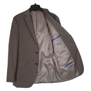 Kenneth Cole Reaction Men's Slim-Fit Stretch Suit Jacket Tan Brown Plaid 40L NWT