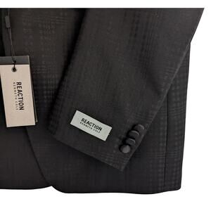 Elevate your formal style with this Kenneth Cole Reaction tuxedo jacket! The textured black tone-on-tone design adds a touch of modern sophistication to a timeless classic. The satin shawl lapel exudes luxury, making it perfect for weddings, galas, or any special occasion. With its comfortable fit and stylish details, you'll be sure to impress.