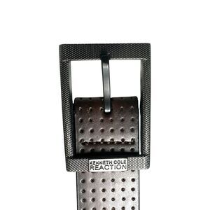 Kenneth Cole Reaction presents a stylish Men's Belt in Size 40, designed in Brown bonded leather with an Ombré perforated pattern. Adorned with a metal buckle featuring the brand's logo, this adjustable belt adds a touch of sophistication to any outfit. 45" in length and 1.5" width. Excellent condition. Kept in a smoke/pet free home.