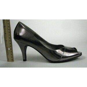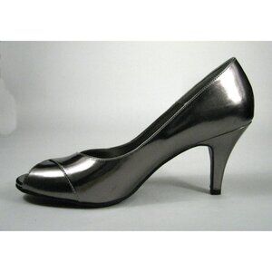 Kenneth Cole Reaction Peep Toe Pumps Dark Silver I Am Rich 3 In Heel Size 8 1/2