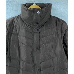 Kenneth Cole Reaction Puffer Down Jacket Women's S Brown Polyester Mock Neck